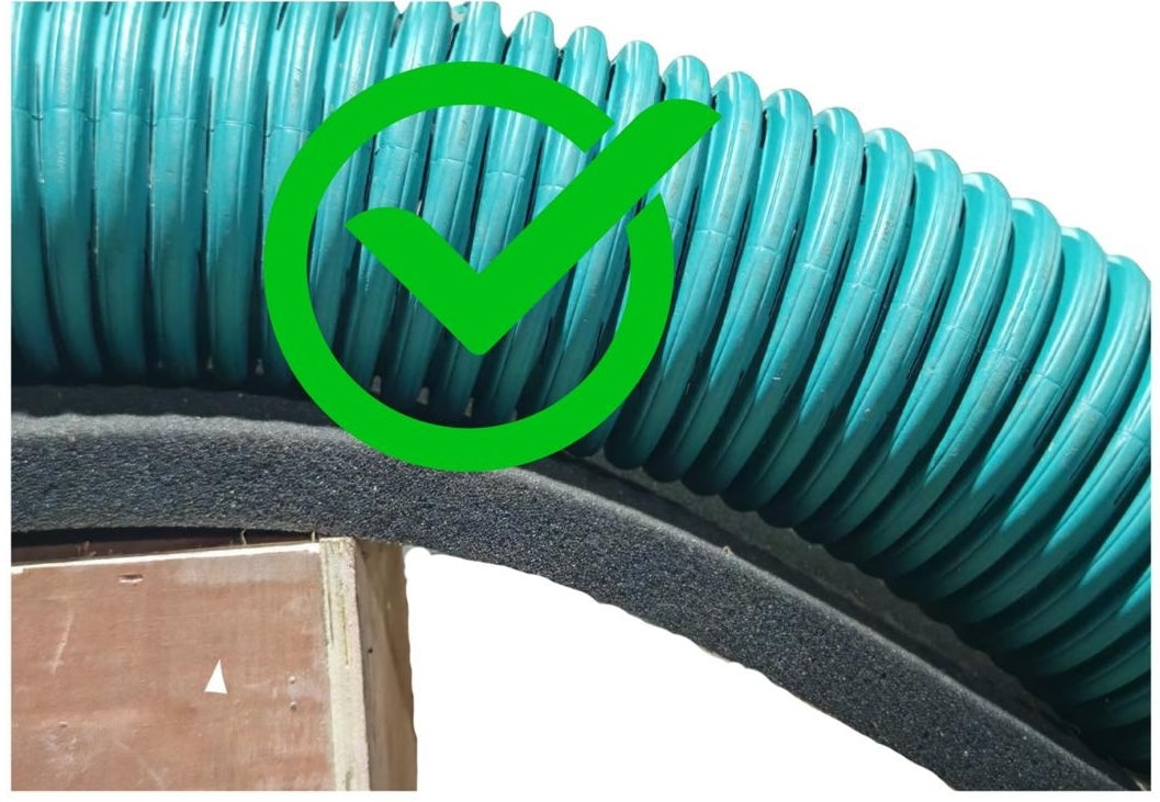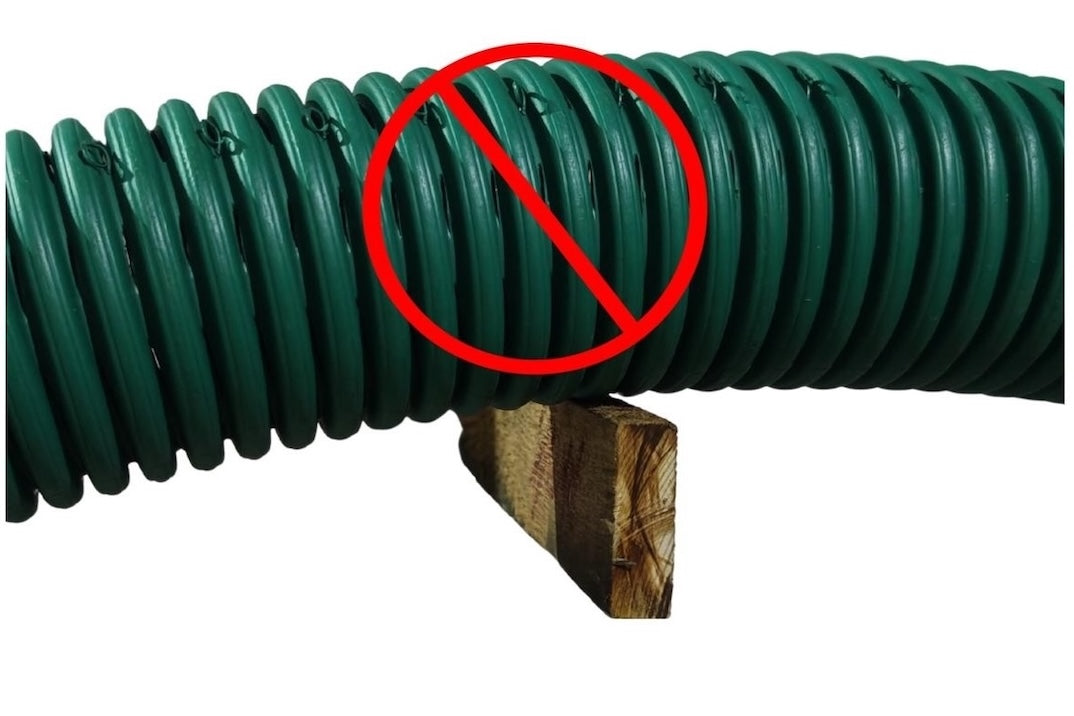 Wenn sich auf dem Weg des Schlauchs Hindernisse wie die oben genannten (oder andere) befinden, muss der Schlauch auf diese Weise geschützt werden. Wenn der Schlauch nicht wie auf dem nebenstehenden Bild gezeigt geschützt wird, führt dies ausnahmslos zu zahlreichen Problemen.