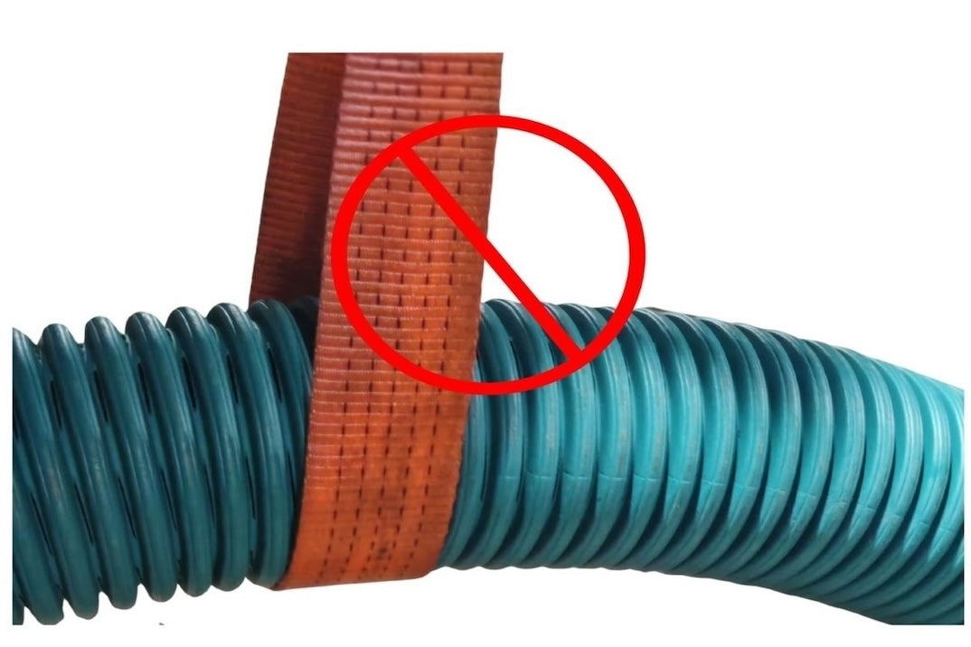 Befestigen Sie den Schlauch nicht mit Riemen, Schnüren oder anderen schmalen Materialien.